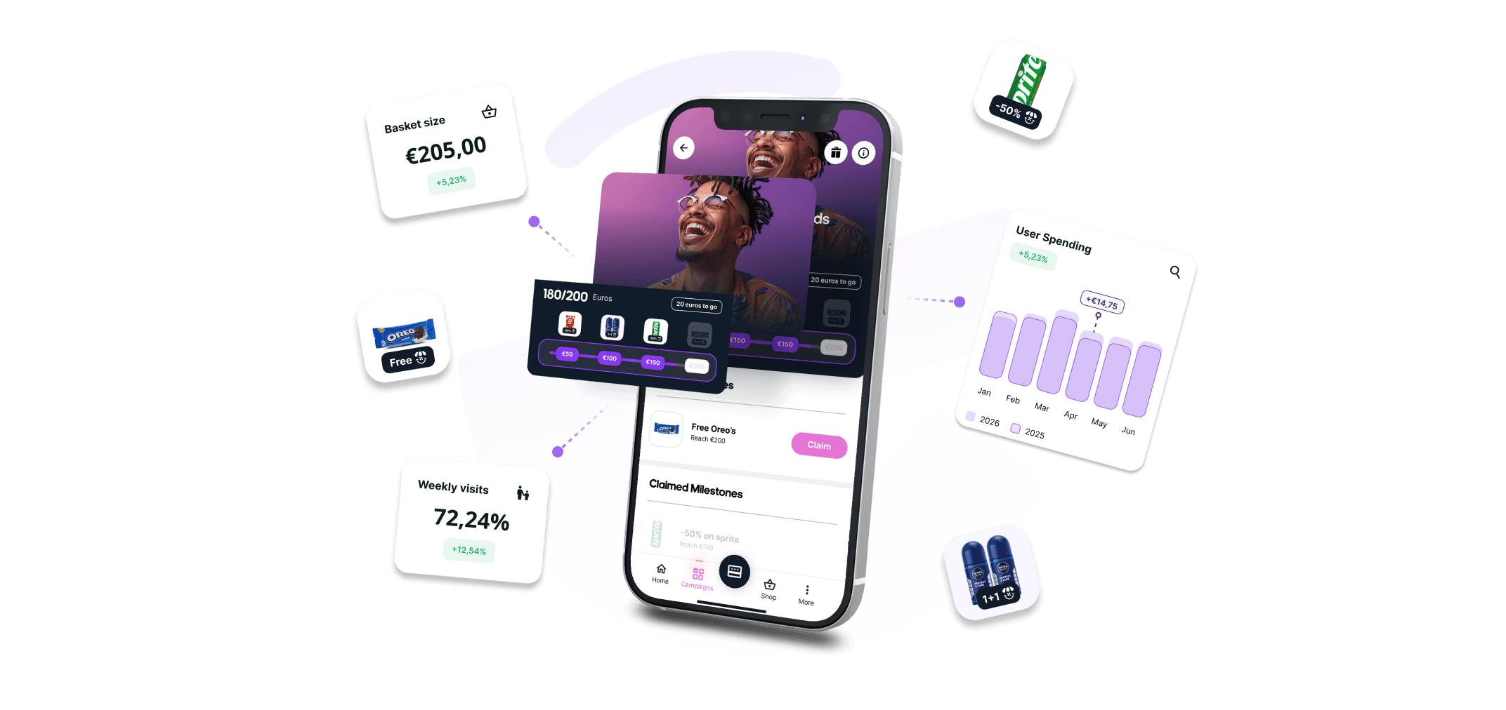 Gamified experiences that drive basket size, visit frequency, and deeper engagement.