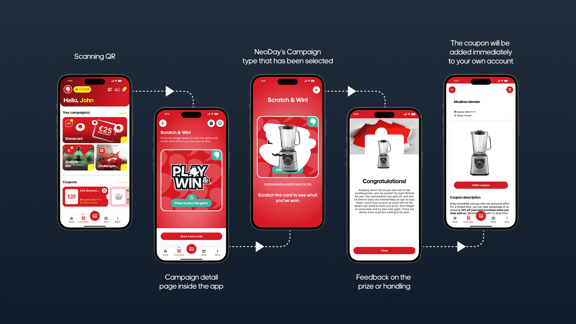 Turn retail transactions into relationships. Capture every in-store interaction through moments like receipt scanning, QR codes, or instant rewards, and turning it into a loyalty touchpoint. With NeoDay, each interaction builds a stronger, data-driven customer connection from first visit to repeat behavior.